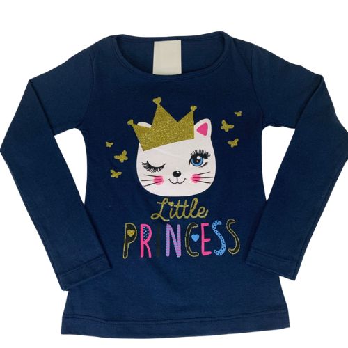Camiseta Manga Longa Infantil Menina Gatinho Com Glitter