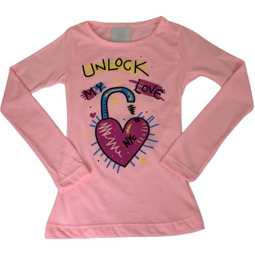 Camiseta Manga Longa Menina Rosa Claro Detalhes Coloridos