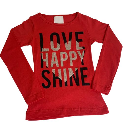 Camiseta Manga Longa Menina Vermelha Com Glitter