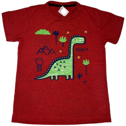 Camiseta Verão Infantil Masculina Dino Rooar – Vermelho