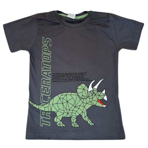Camiseta Verão Infantil Masculina Dinossauro – Cinza