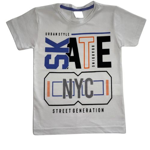Camiseta Verão Infantil Masculina Skate NYC – Branco