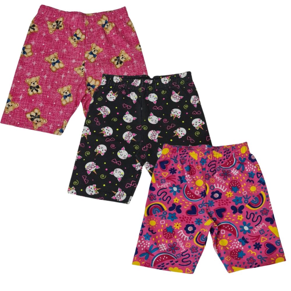 Kit 3 pçs Shorts Ciclista infantil Estampado com Detalhes