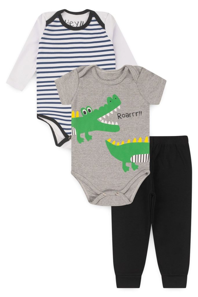 Kit Body Bebê 3 Peças Suedine Dino Roar