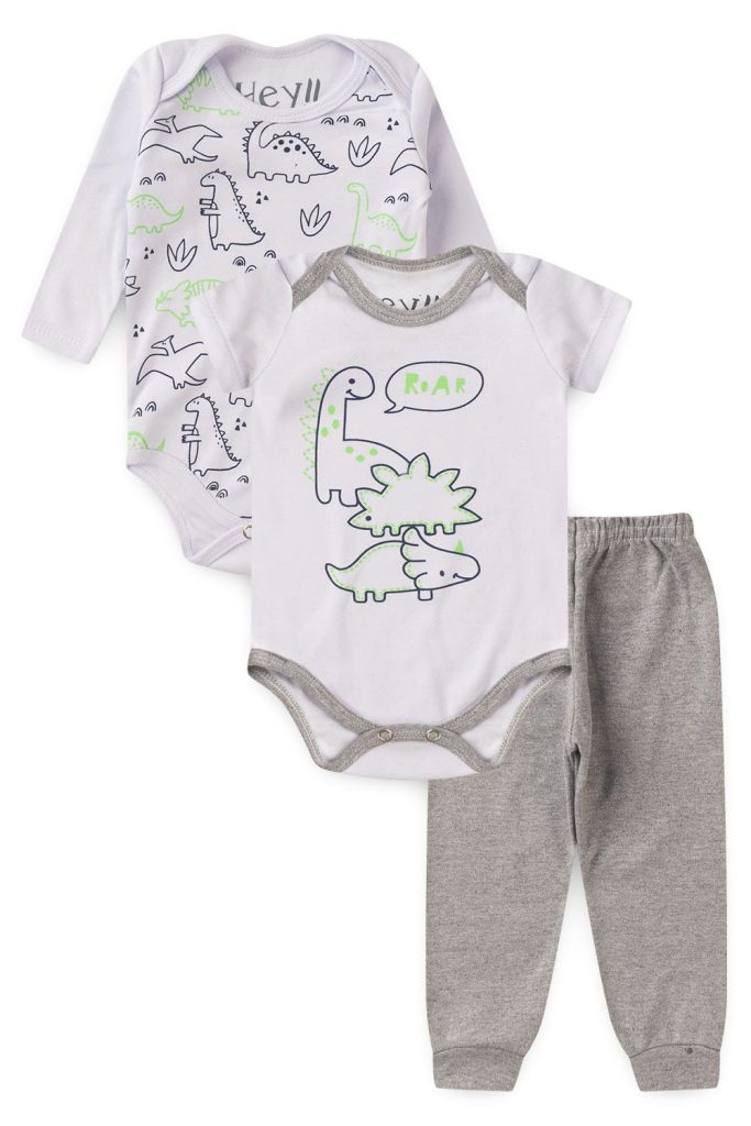 Kit Body Bebê 3 Peças Suedine Dinossauro