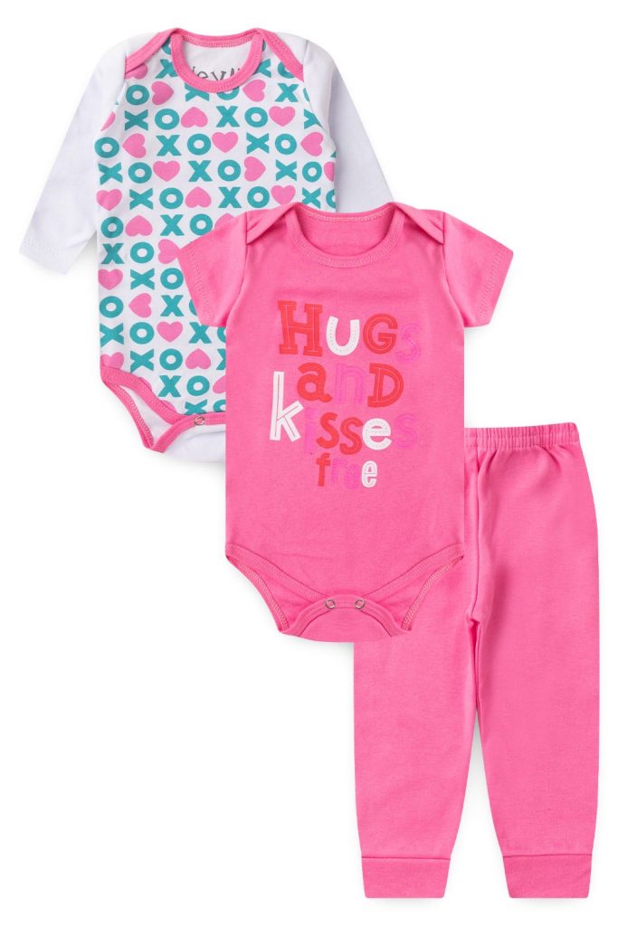 Kit Body Bebê 3 Peças Suedine Kisses