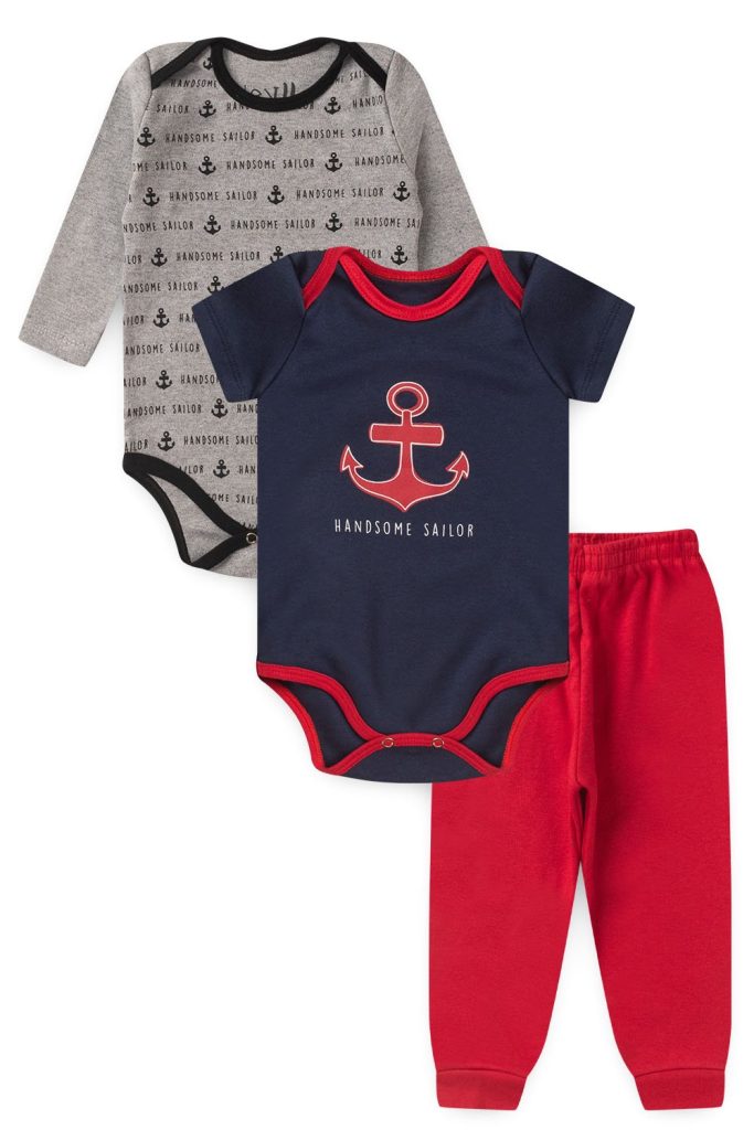 Kit Body Bebê 3 Peças Suedine Marinheiro