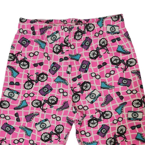 Legging Infantil Menina Quadriculada Rosa Neon com Desenhos