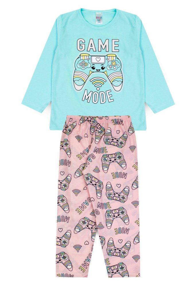 Pijama Infantil Feminino Inverno Game Mode – Azul Claro