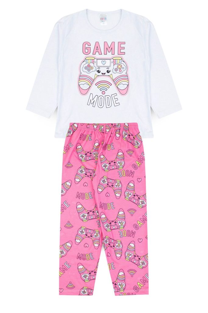Pijama Infantil Feminino Inverno Game Mode – Branco