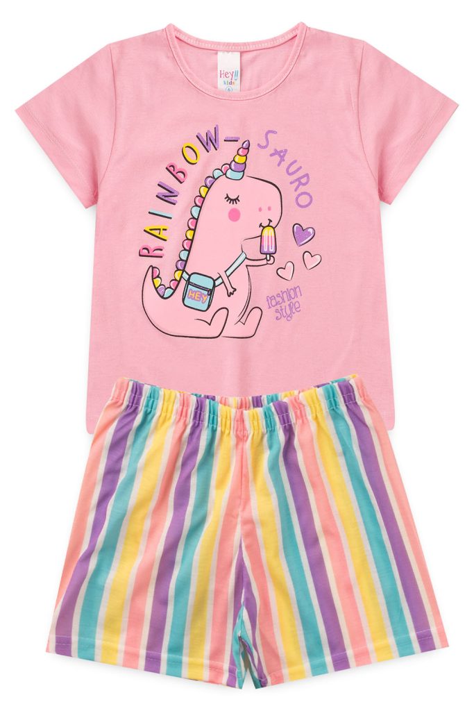 Pijama Infantil Feminino Verão Rainbow Sauro – Rosa Claro