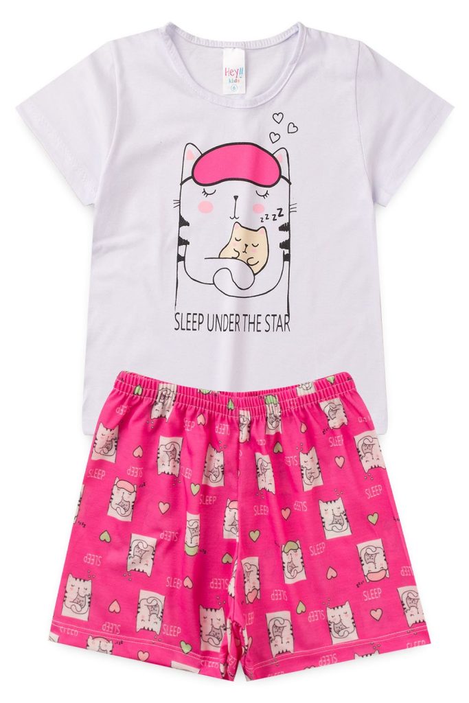 Pijama Infantil Feminino Verão Sleep Cat – Branco