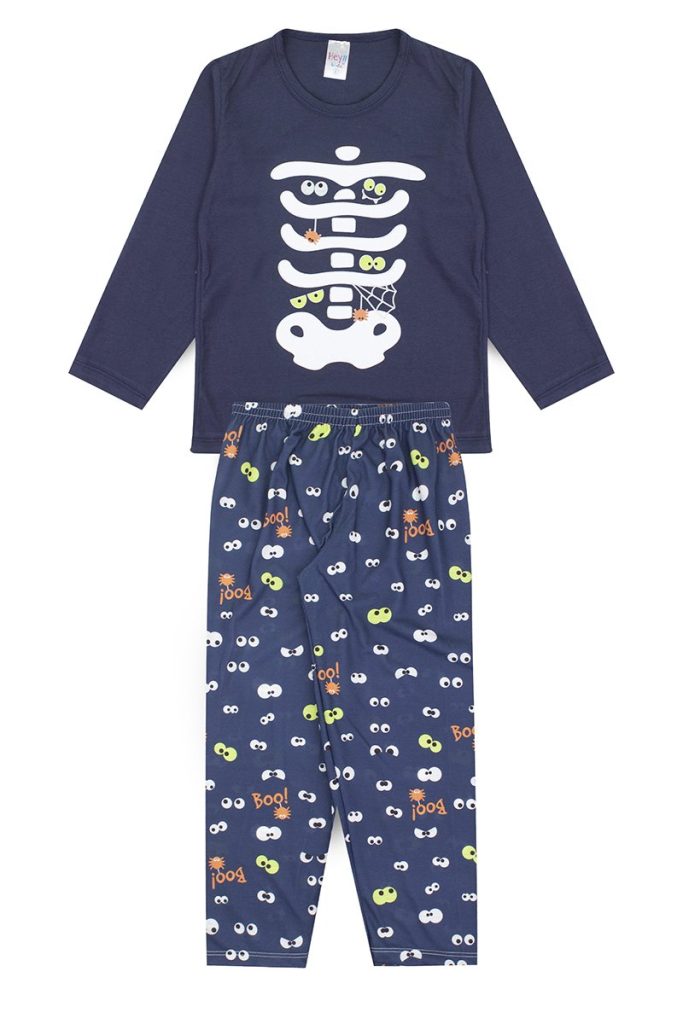 Pijama Infantil Masculino Inverno Esqueleto- Azul