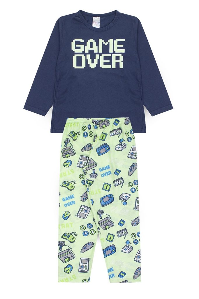 Pijama Infantil Masculino Inverno Game Over – Azul