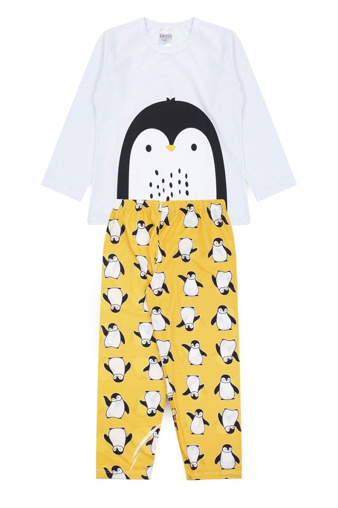 Pijama Infantil Masculino Inverno Pinguim – Branco