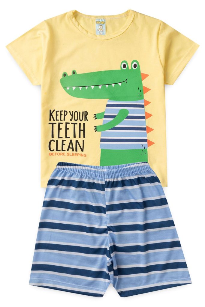 Pijama Infantil Masculino Verão Dinossauro – Amarelo