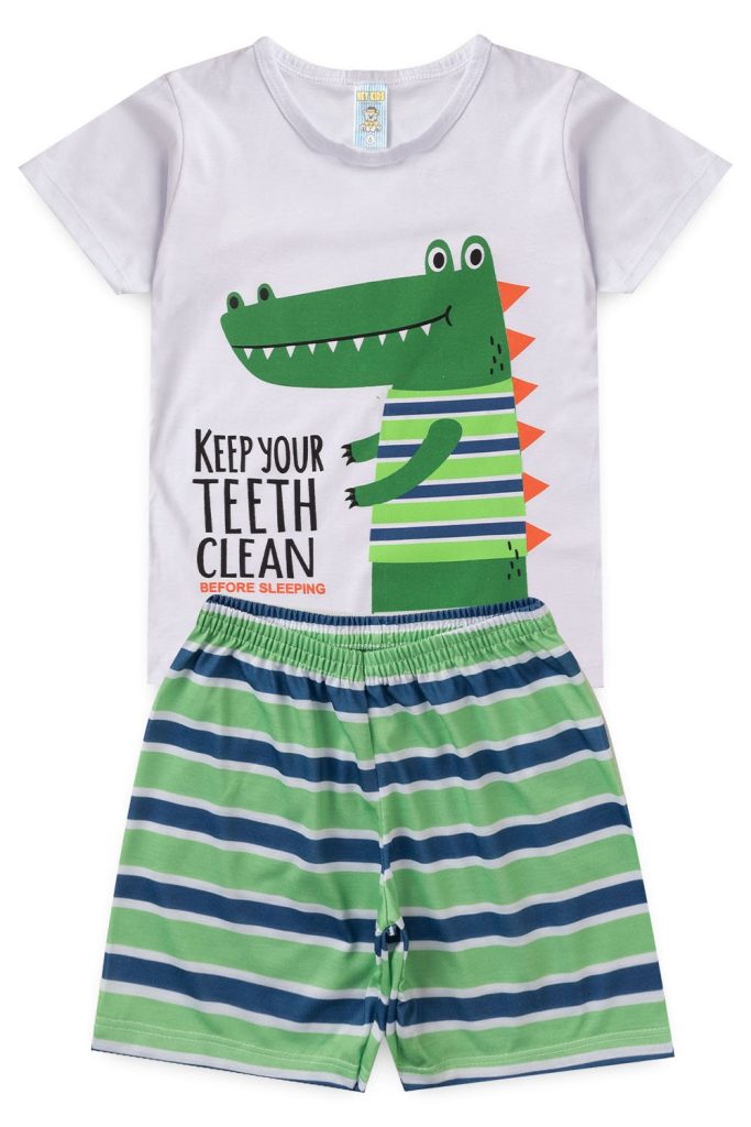 Pijama Infantil Masculino Verão Dinossauro – Branco