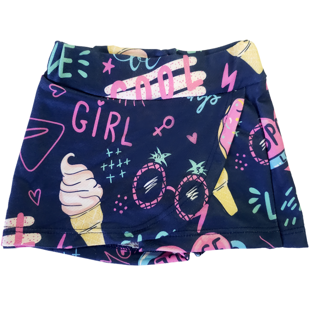 Short Saia Infantil Azul Escuro Textos e Figuras