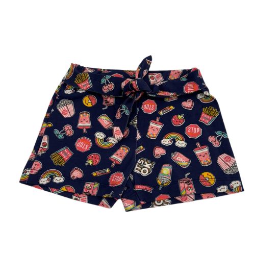 Shorts Cinto Infantil Estampado Azul Marinho Comidinhas