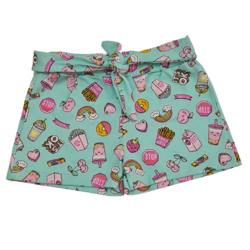 Shorts Cinto Infantil Estampado Verde Àgua Detalhes Fofos