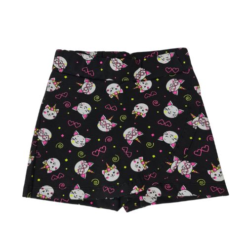 Shorts Saia Menina Preto Estampado Gatinho com Detalhes Neon